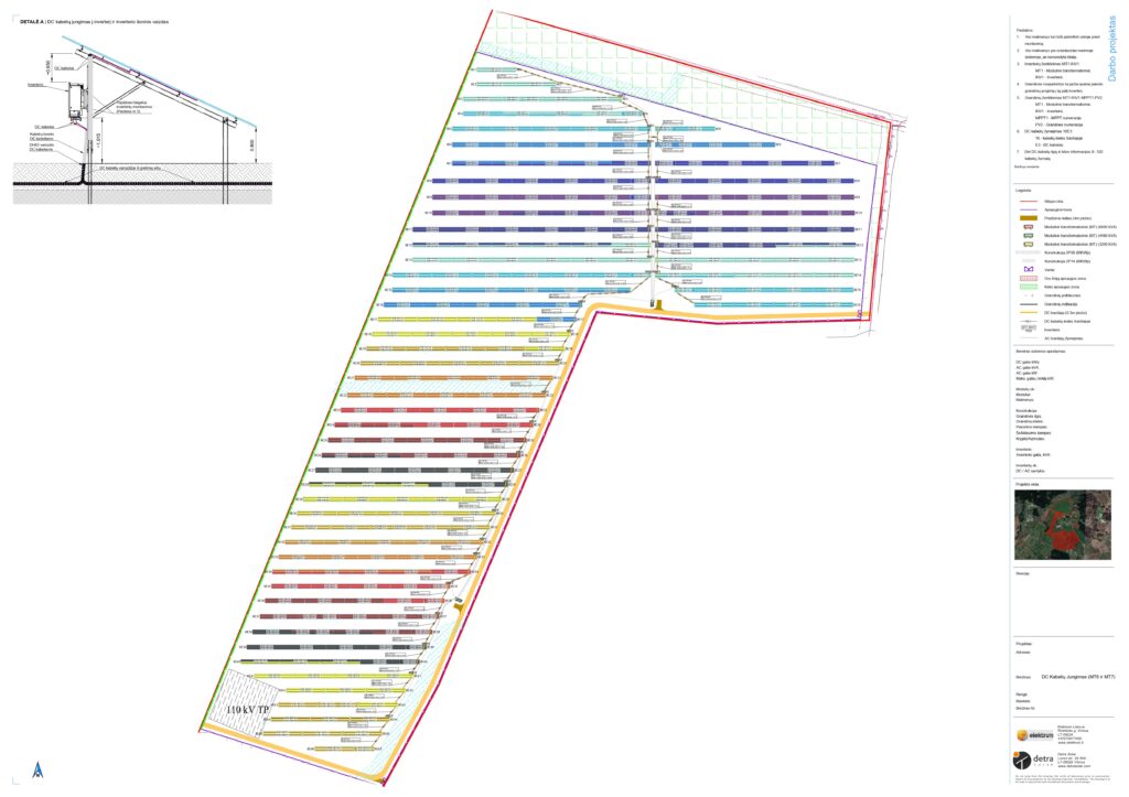 - Portfolio Integration: The Dovilai KUS (78 MW) site combined seven individual PV projects into one unified layout. Each sub-project received its own DC design package and separate approval cycle before consolidation, ensuring documentation traceability and technical alignment.